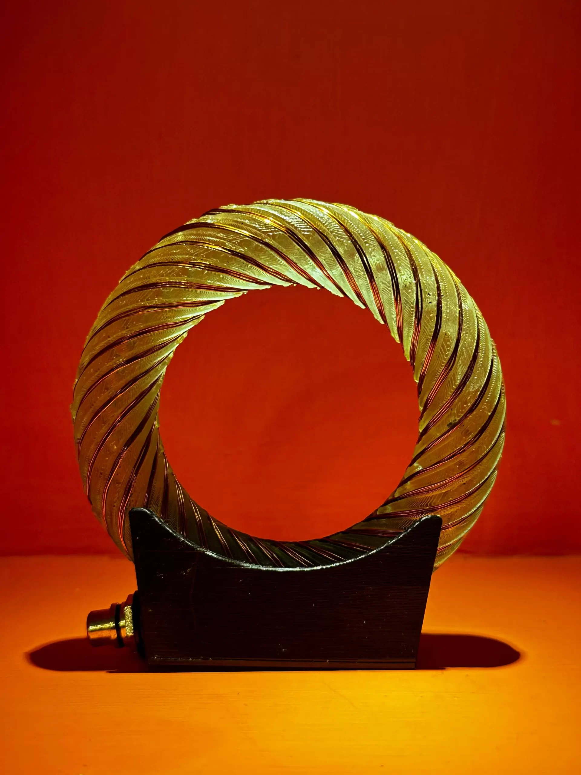 PLA yani doğal malzemelerden elde edilen bir plastik ile 3D yazıcıda üretilmiş oluklu halka üzerine tam bakır bobin tel sarımı ile el yapımı olduğu için bazı üretim farklılıkları gibi ufak detaylar olabilir.