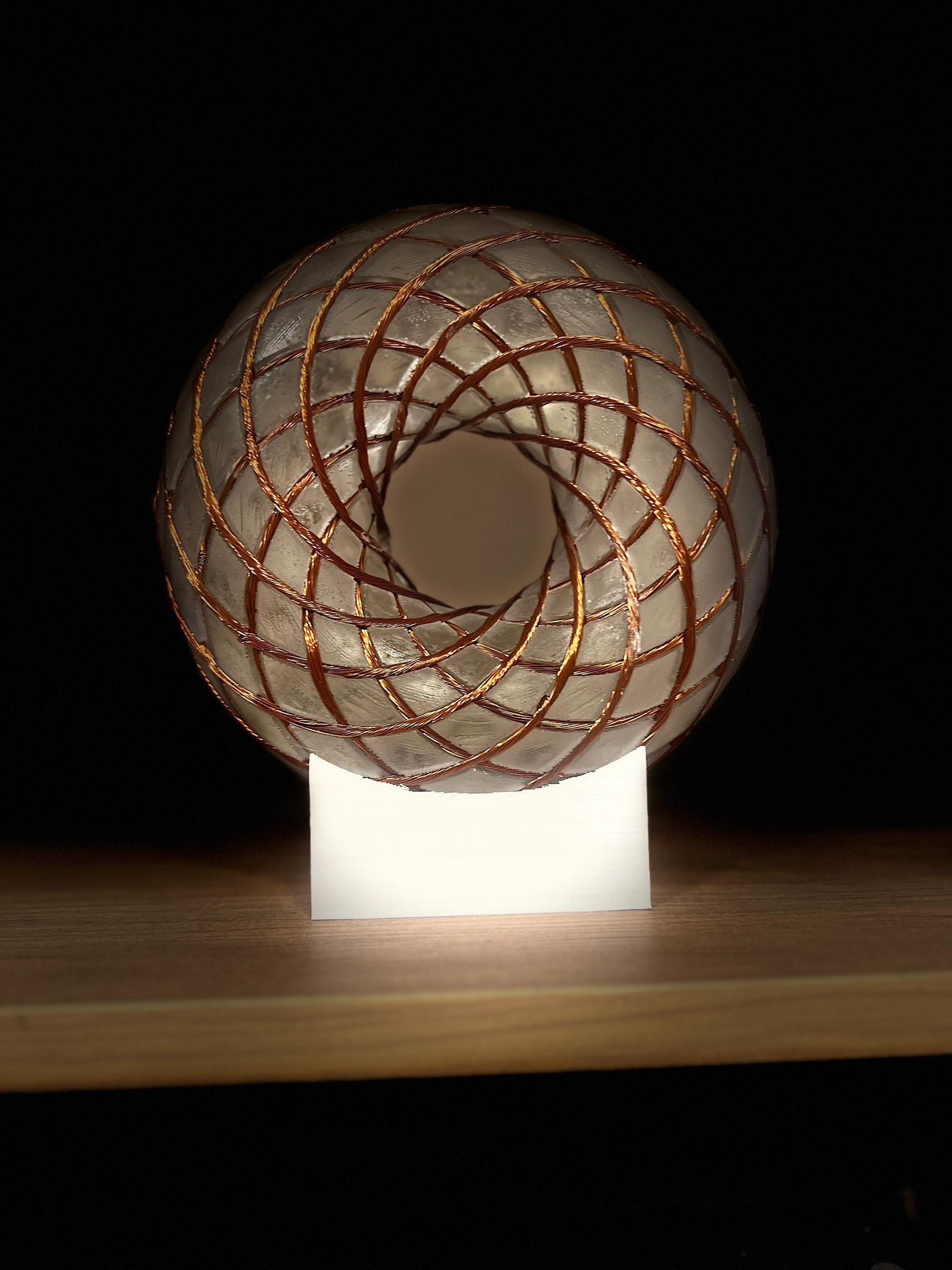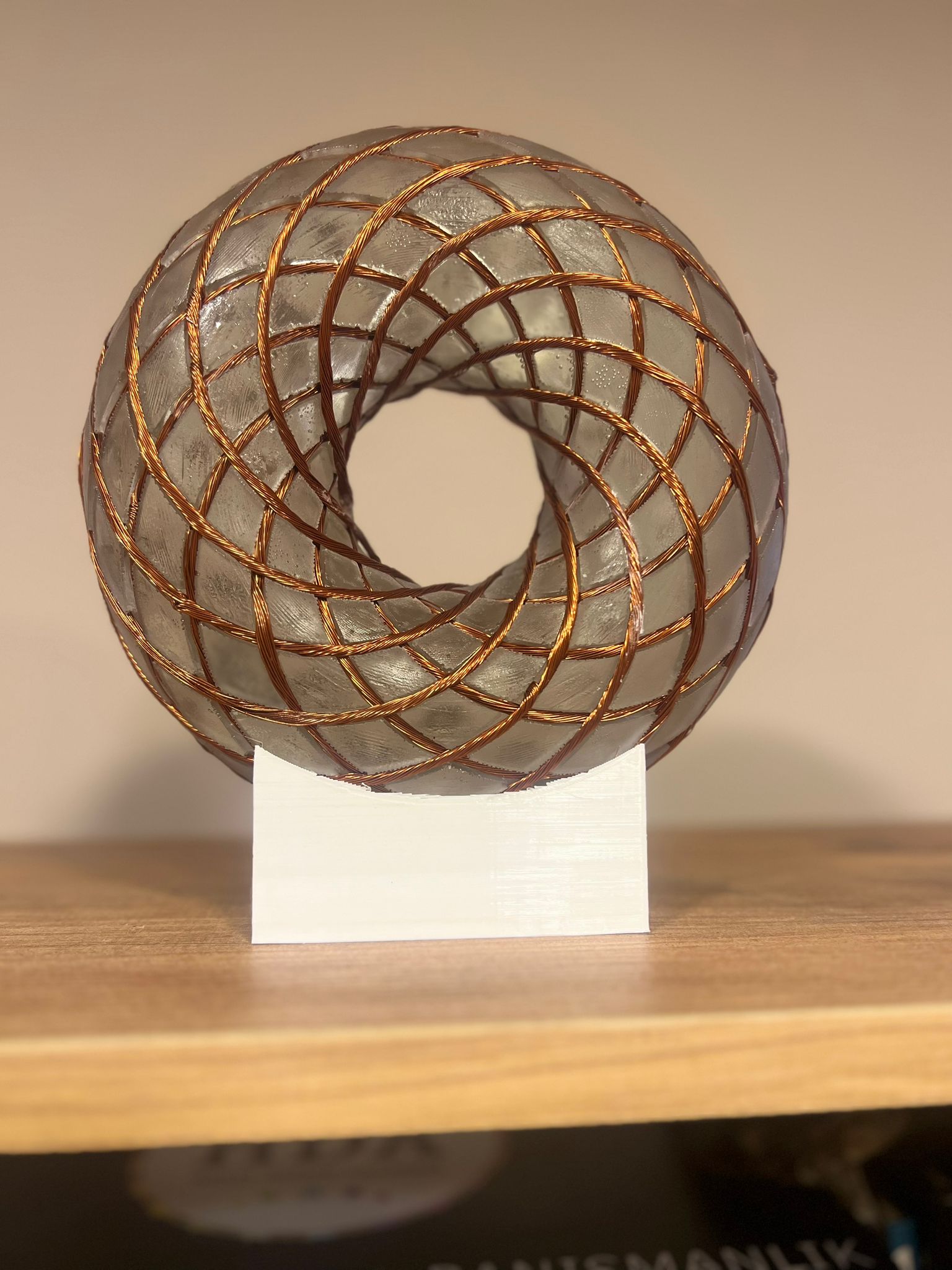 PLA yani doğal malzemelerden elde edilen bir plastik ile 3D yazıcıda üretilmiş oluklu halka üzerine tam bakır bobin tel sarımı ile el yapımı olduğu için bazı üretim farklılıkları gibi ufak detaylar olabilir.