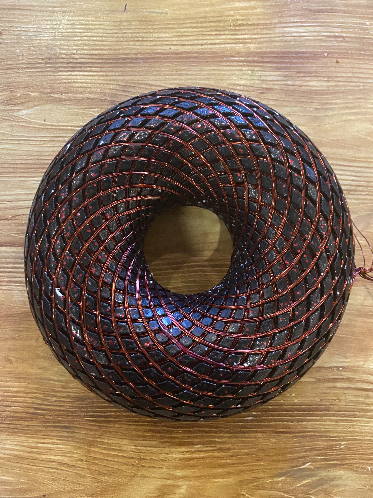 PLA yani doğal malzemelerden elde edilen bir plastik ile 3D yazıcıda üretilmiş oluklu halka üzerine tam bakır bobin tel sarımı ile el yapımı olduğu için bazı üretim farklılıkları gibi ufak detaylar olabilir.